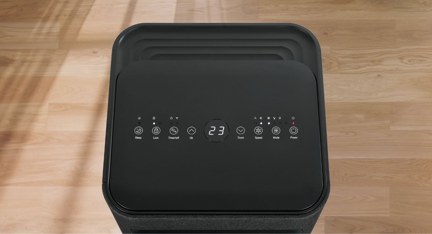 Ausclimate's Smart Compact Portable AC is designed to reliably cool medium-sized rooms. Its modern and sleek design complements any space while delivering powerful cooling performance. Equipped with advanced features such as a self-evaporative system and strong air circulation, this unit is effective and user-friendly.